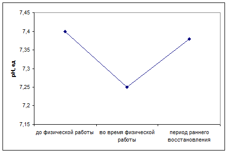 При физической нагрузке происходит закисление крови и тканей кислыми продуктами обмена, преимущественно лактатом, поэтому отмечается значительное снижение рН.