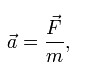 Второй закон Ньютона: ускорение движущегося тела прямо пропорционально действующей на него силе, обратно пропорционально массе тела и направлено по прямой, по которой эта сила действует, т. е.
