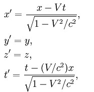 x ′ = x – vt , y ′ = y , z ′ =z , t ′ = t ,
