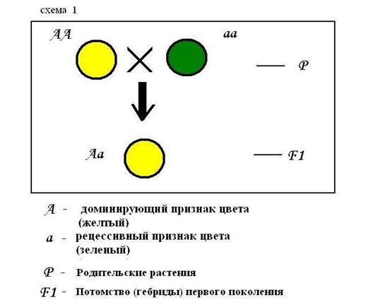 Скрещивание двух организмов называется гибридизацией, потомство от скрещивания двух особей с разной наследственностью называют гибридным, а отдельную особь — гибридом. Моно гибридным называется скрещивание двух организмов, отличающихся друг от друга по одной паре альтернативных (взаимоисключающих) признаков. Следовательно, при таком скрещивании прослеживаются закономерности наследования только двух признаков, развитие которых обусловлено парой аллельных генов. Все остальные признаки, свойственные данным организмам, во внимание не принимаются.