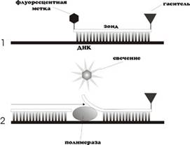 Рис. 3. Схема ПЦР в реальном времени с использованием зондов FRET[7].