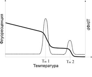 Этот способ детекции основан на том факте, что флуоресценция бромистого этидия и SYBR Green I значительно возрастает при их внедрении в двухцепочечные молекулы ДНК [14] (Рис. 4). Таким образом, можно наблюдать за накоплением продуктов амплификации. Очень важно отметить то, что увеличение флуоресценции может быть связано как с накоплением специфического продукта, так и неспецифического (праймеры-димеры, шмер). Для получения корректных результатов необходимо дополнительное изучение полученных ампликонов с помощью построения так называемых "кривых плавления".