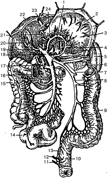 Ветви брюшной части аорты.. 214