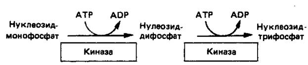 Рисунок 4. Реакции фосфорилирования нуклеозидмонофосфата и нуклеозиддифосфата.