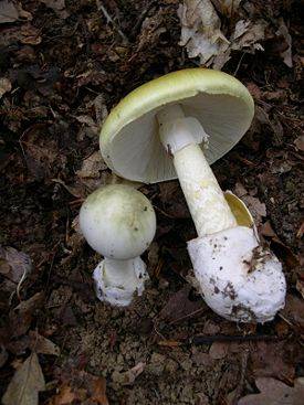 Опасным ядовитым грибом карпатских лесов, встречающимся в большом количестве в буковых, дубовых и смешанных лесах, является бледная поганка, или мухомор зеленый. Это красивый гриб с оливковой, зеленовато-оливковой, к центру более темной шляпкой без остатков покрывала. Пластинки и споровый порошок белые. Ножка белая, с бледно-зеленоватыми полосками (муаровая), с широким свисающим кольцом, в основании с мешковидной широкой свободной белой вольвой. По характеру образуемых токсинов и симптомам отравления к бледной поганке близки два других смертельно ядовитых мухомора – мухомор вонючий и мухомор весенний. Мухомор вонючий имеет белую шляпку до 7 см в диаметре, неприятный запах. Произрастает в хвойных лесах, реже – лиственных. Мухомор весенний также имеет белую окраску, встречается в лиственных и смешанных лесах. У трех названных смертельно ядовитых мухоморов имеется много съедобных двойников.