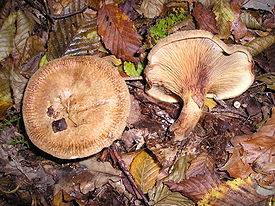 Шляпка:Бесформенная, с волнисто-складчатой поверхностью, светло-бурая или охря-но-бурая, почти полностью приросшая к ножке.