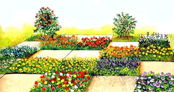 Циферблат и цифры в таких часах «набираются» из сортовых компактных однолетников (например, ковровые растения ирезине или альтернантеры), а время будет показывать гномон - столбик, установленный в центре циферблата. Гномоны продаются в садовых центрах.