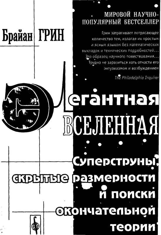 Содержательнаяиважнаякнига... Элегантная Вселенная рассказывает... отеорииструнсясностьюишармом. Этоиличный рассказ, иисторияограндиозноминтеллектуальномдвижении.