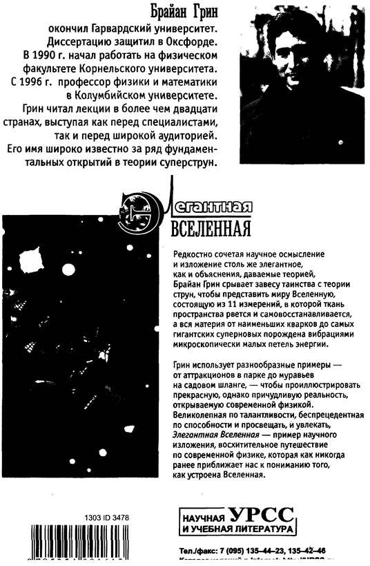 Я написал Элегантную Вселенную в попытке описать замечательные открытия, родившиеся на переднем крае физических исследований, и сделать их доступными широкому кругу читателей, особенно тем из них, кто не имеет достаточной подготовки в физике и математике. Читая в течение последних нескольких лет публичные лекции по теории суперструн, я стал свидетелем растущего стремления понять, что говорят современные исследования о фундаментальных законах мироздания, почему эти законы ведут к радикальному изменению наших представлений о Вселенной, какие проблемы остались нерешенными в нашем непрерывном поиске окончательной теории. Я надеюсь, что мои рассказы об основных достижениях, которых добились физики со времен Эйнштейна и Гейзенберга, и описание бурного прогресса, свидетелями которого мы стали на рубеже столетий, обогатят ваши знания и удовлетворят ваше любопытство.