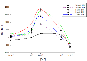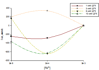2. Впервые показана прооксидантная активность комплекса ДГК-Fe(III) на модельных биохимической и клеточной системах и определены оптимальные концентрационные границы проявления данного эффекта.