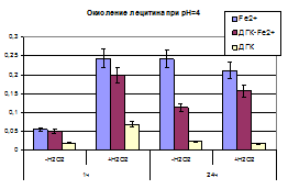 Таким образом, наличие прооксидантной активности ДГК можно ожидать в условиях высоких значений pH, а так же в присутствии металлов переменной валентности, но уже в кислых растворах.