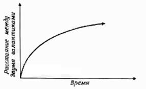 Модель Фридмана, где Вселенная появляется из «точки» в некий момент времени t =0 и сразу начинает расширяться неограниченно во времени, называют открытой моделью Вселенной (рис. 1б). Пространство в данном случае обладает отрицательной кривизной, следовательно, бесконечно. Расширение в данном случае следует понимать в том смысле, что расстояние между любыми двумя точками пространства, хотя оно и бесконечно, все время возрастает. Другими словами, все точки пространства убегают друг от друга, оставаясь полностью равноправными в любой момент времени. Отсутствие выделенных точек пространства - следствие его однородности. Расширение началось сразу из всех точек пространства. Понимание этого усложняется тем, что все пространство в начале расширения следует считать бесконечным.