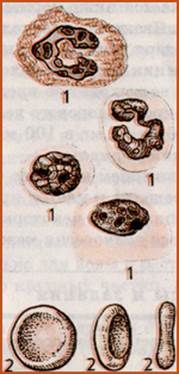 Состав крови: Клетки крови: 1 - лейкоциты; 2 - эритроциты.