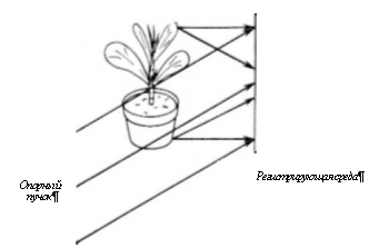 Во втором подходе используется безлинзовое формирование изображения при большом относительном отверстии. Это означает, что объект должен находиться настолько близко к голографической записывающей среде, чтобы необходимый участок регистрирующей среды получал информацию от любой части объекта. Это в свою очередь влечет за собой проблемы, связанные с установкой опорного и освещающего объект пучков, а также с положением регистрирующей среды. Было предложено много методов для достижения этого. На рис. 1.3 показано, как записывают нормальные голограммы объектов. Проблемы, связанные с приближением записывающей среды к объекту, не просты. На рис. 1.4 показано, каким образом объектный и опорный пучки (но не освещающий пучок) могут падать на записывающую среду даже в случае, если объект и записывающая среда находятся на одной оси. Ясно, что обычное расположение (рис. 1.3) не может быть использовано для получения желаемого результата, так как нет возможности осветить объект или ввести опорный пучок. Макмахоном и Колфилдом было предложено несколько решений этой проблемы [1.6].