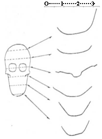 Рис. 1.7. Профили модели черепа, полученные при помощи голографического метода Тара и др. [1.11] (С разрешения исследовательской лаборатории фирмы General Motors Corporation)