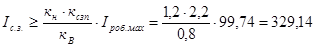 Приймаємо уставку 6 А для реле типу РТ-80, тоді Iс.з.= 480 А.