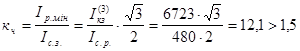 Кч осн.зах. = 1,5 – чутливість згідно ПУЕ основного захисту