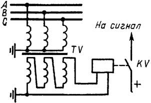 Схема пристрою неселективної сигналізації при замиканнях на землю приведена на рисунку 1.