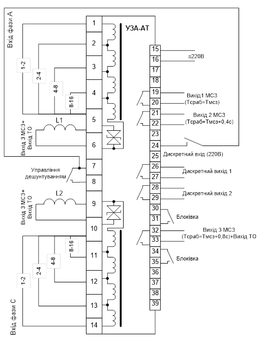 Рисунок 2 - Схема підключення реле УЗА-АТ
