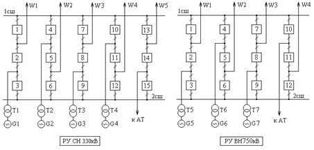 Звичайно до РУ середньої напруги (СН) підключається стільки генераторів, скільки необхідно, щоб покрити навантаження в максимальному режимі.