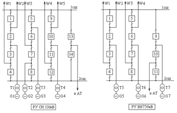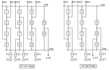 7. Кількість з'єднань на РУ-330 кВ і РУ-750 кВ