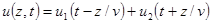 — произвольные дважды дифференцируемые функции. Это наложение двух плоских однородных недеформируемых: волн, распространяющихся в противоположных направлениях.