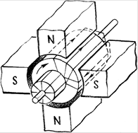 В результате взаимодействия якоря с полем полюсов якорь придет во вращение, обмотка его будет вращаться в магнитном поле и в ней индуцируется ЭДС самоиндукции