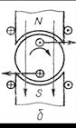 Применяя правило левой руки, можно легко заметить, что при изменении направления тока только в якоре (Рис.6-12, б) или только в обмотке возбуждения (Рис.6-12, б) направление вращения якоря изменяется на противоположное, а одновременное изменение направления тока в обеих обмотках не изменяет направления вращения якоря (Рис.6-12, г)