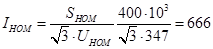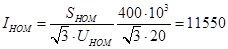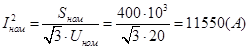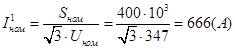 Номинальный ток ответвления трансформатора в цепи НН: