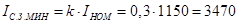 Уставка срабатывания отсечки тока ![]()
