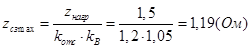 Определим сопротивление срабатывания защиты по условию отстройки от вектора сопротивления наибольшей нагрузки: