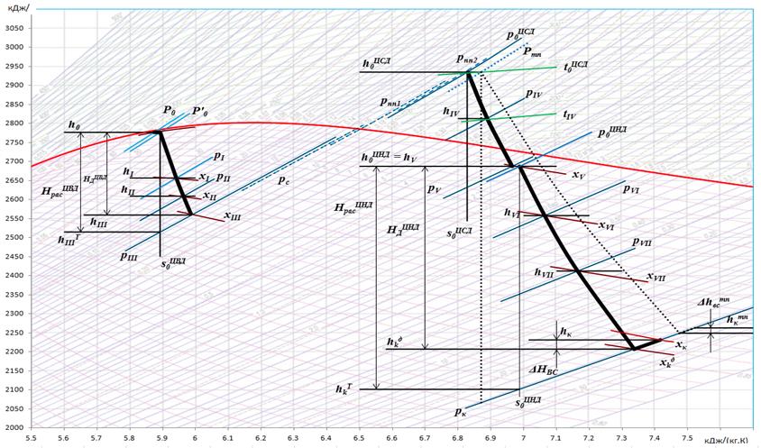 ПОСТРОЕНИЕ ПРОЦЕССА РАСШИРЕНИЯ ПАРА В ГЛАВНОЙ ТУРБИНЕ И В ПРИВОДНОЙ ТУРБИНЕ ПИТАТЕЛЬНОГО НАСОСА В H,S – ДИАГРАММЕ