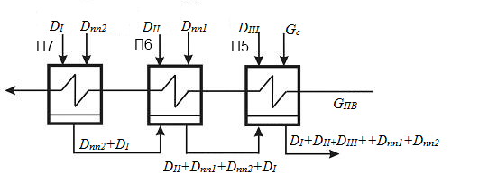 В проектных расчетах распределение подогрева ОК и ПВ между регенеративными подогревателями принимается равномерным.