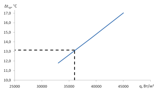 Δtср =(Δtб -Δtм )/ln(Δtб /Δtм )= 14 °С