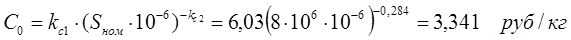 уэ – стоимость электроэнергии, рассчитанная для двухставочного тарифа при средней продолжительности максимальной нагрузки для понижающих трансформаторов 5300 час/год, уэ = 0,338×10-3 руб/Вт×час;