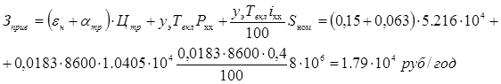З прив = (eн +атр )×Цтр + уэ ×Твкл ×Рхх + руб./год (2) ,