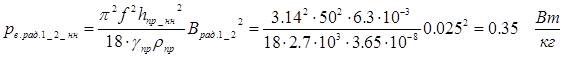 kв1 =0,14, kв2 =0,4, αв =0,0577 - коэффициенты, определяемые на основе анализа геометрических соотношений в изготавливаемых трансформаторах (для трансформаторов с обмотками из алюминиевого провода)
