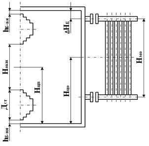 Выбор типа радиатора производим из расчета высоты бака по расстоянию между осями верхнего нижнего патрубков Нмо , которое должно быть на 200...300 мм меньше высоты бака