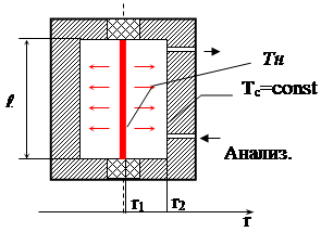 · торцевые эффекты (т.е. утечка тепла в торцевые части камеры 2 через нить) отсутствуют.