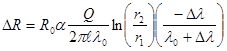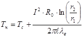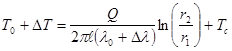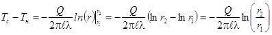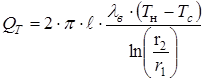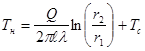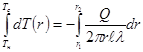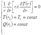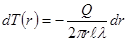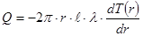 Тепловой поток Q на расстоянии r от оси нити определяется по закону Фурье: