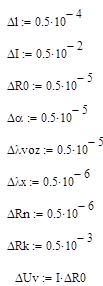 lRT =0,00002 (1/К)-температурный коэффициент тензорезистора (константан);
