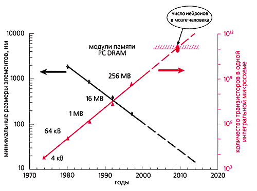 Динамика развития микроэлектроники в предшествующие 30 лет и прогноз на следующее десятилетие на примере роста параметров больших интегральных схем оперативной памяти для персональных компьютеров.