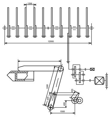 Механизм сталкивателя имеет следующие технические данные: длина хода штанг Н = 1,5 м; количество штанг m = 10; расстояние между штангами – 1,2 м; вес штанги Gш = 50 кг; передаточное число редуктора i = 40,2; общий к.п.д. η=0,85; коэффициент трения скольжения штанги сталкивателя о направляющие настила μ = 0,5; радиус кривошипа редуктора r = 0,25 м; радиус кривошипа качающегося рычага R = 0,5 м; длина качающегося рычага l = 1,5 м; длина шатуна lш = 1,5 м. Работа привода сталкивателя осуществляется от асинхронного двигателя с фазным ротором, закрытого исполнения и независимым охлаждением типа МТНБ12-10У1, Uн =380 В, Рн = 60 кВт, nн = 575 об/мин.