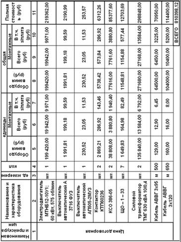 4.1 Сметно-финансовый расчет стоимости электрооборудования и материалов