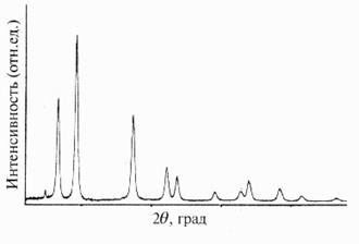 Из этого соотношения видно, что плоскости с большими индексами расположены ближе друг к другу, а согласно закону Вульфо-Брегга брегговский угол для них – больше. Пример картины рентгеновской дифракции представлен на рис.8.