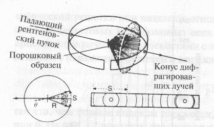 Рис.10. Метод Дебая-Шеррера дифракции на порошке