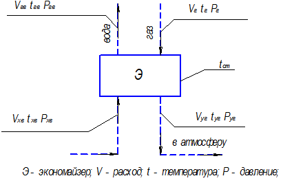 Уравнение теплового баланса водяного экономайзера на 1 кг сожженного топлива: