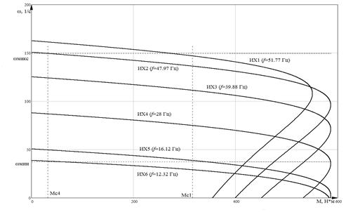 5. Расчёт и построение механических характеристик при максимальном, среднем и минимальном значениях скорости движения