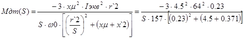 2.5 Рассчитать и построить механические характеристики при максимальном, среднем и минимальном значениях скорости движения.