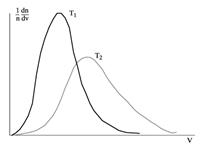 Рисунок 5 Распределение молекул по скоростям (Т2>T1) [2]